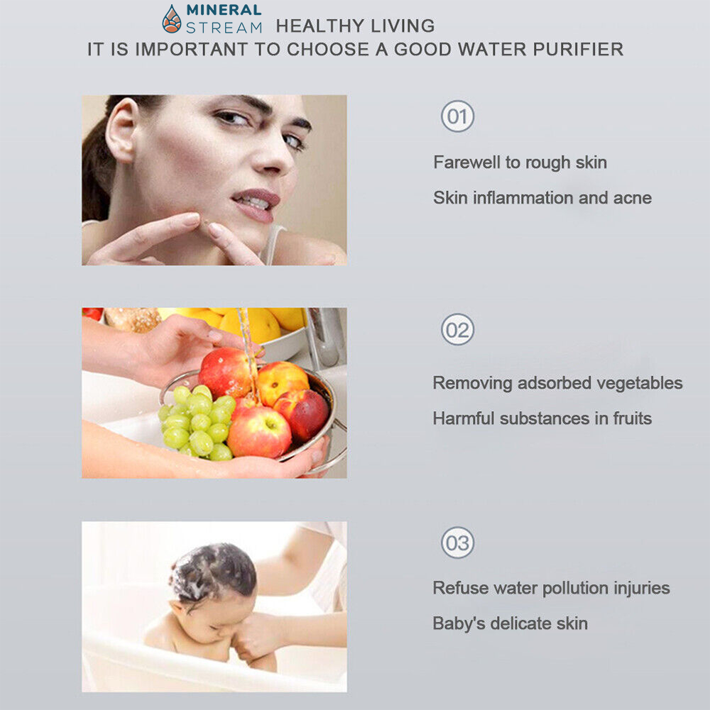 - Ήρωας Ενυδάτωσης: Αφαιρεί το 99,9% του ξηραντικού χλωρίου και χλωραμίνης, προωθώντας την ελαστικότητα του δέρματος.
